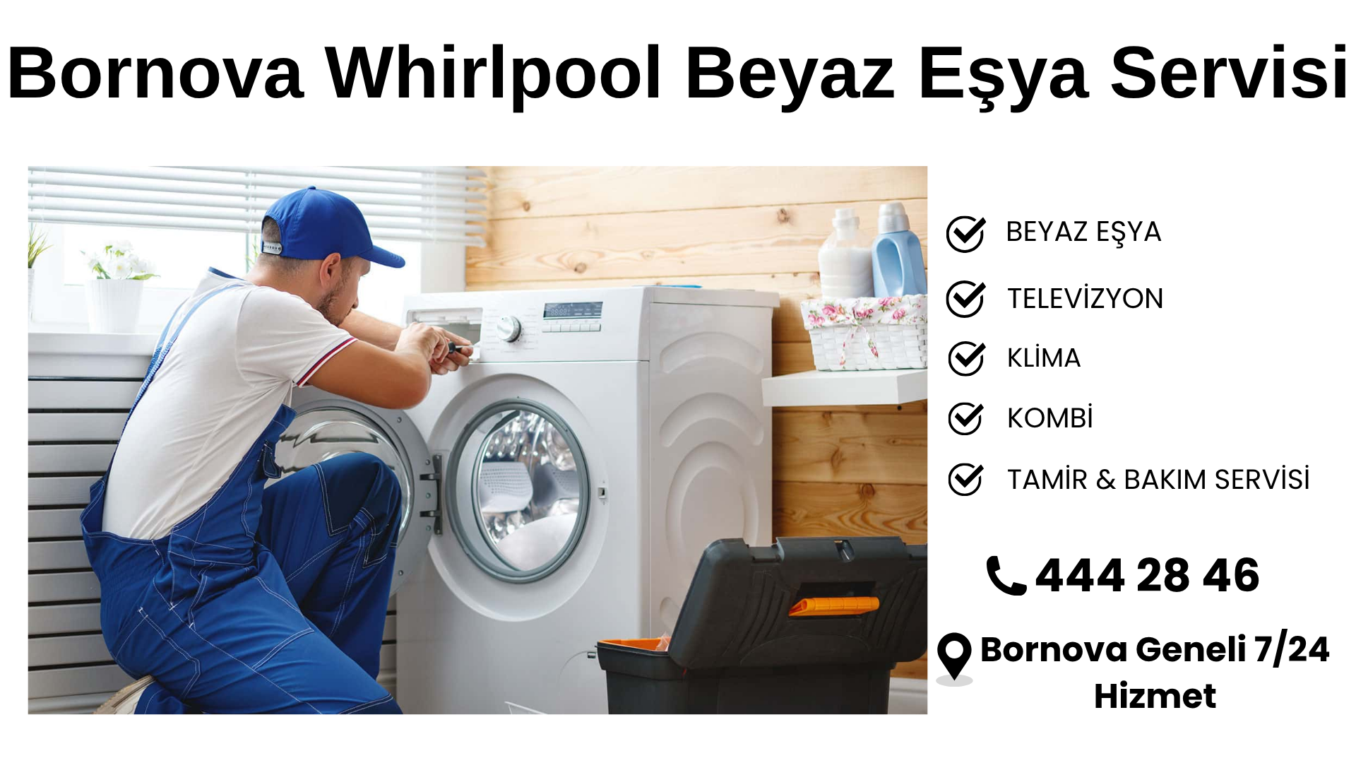 Bornova Whirlpool Beyaz Eşya Servisi Whirlpool buzdolabı, çamaşır makinesi, bulaşık makinesi ve derin dondurucu arızanızda her zaman yanınızda. Üstelik yetkili servis kalitesinde ve yetkili servislerinden uygun fiyata sizlere sunmaktayız. Servisimize 7/24 ulaşabilir, hizmet alabilirsiniz.